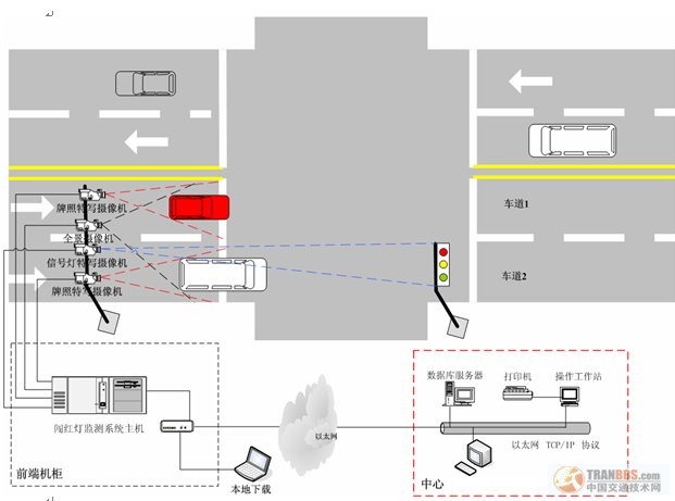 該系統采用采取純視頻檢測方式,自動對視頻流中運動物體進行實時逐幀檢測、鎖定、跟蹤,根據車輛運動軌跡判斷車輛是否違章并進行記錄,無需破壞路面,埋設線圈。采用200萬或500萬CCD高清一體化攝像機為采集主體,單臺200萬攝像機可覆蓋單向2車道,單臺500萬攝像機可覆蓋3車道;采用LED頻閃燈進行夜間補光。設備穩定結構簡單,便于安裝維護。